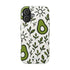 Each element pops with rich green tones and bold black outlines on a clean white backdrop that creates a vibrant and minimal look. The scattered, spacious placement of the avocados and leaves gives your phone a natural, effortless style that stands out without overwhelming.
